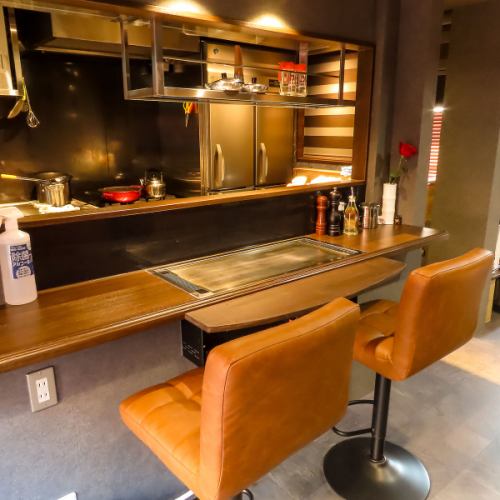 【お一人様でも気兼ねなくくつろげるカウンター席も完備】全2席のカウンター席はお一人様や、カップル・ご夫婦でのデートにも人気のお席です。ゆったりと広めに作られているので、開放感も感じながらお寛ぎいただけます。